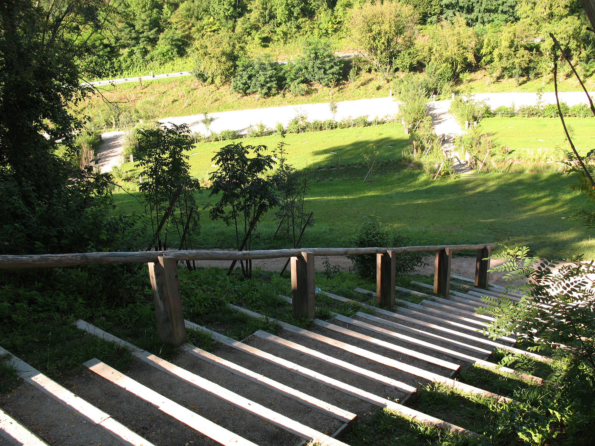 65% des stationnements sont traités en prairie, le reste en grave naturelle. Les matériaux utilisés sont renouvelables, les surfaces perméables, les essences sélectionnées sont indigènes et proviennent de pépinières locales.