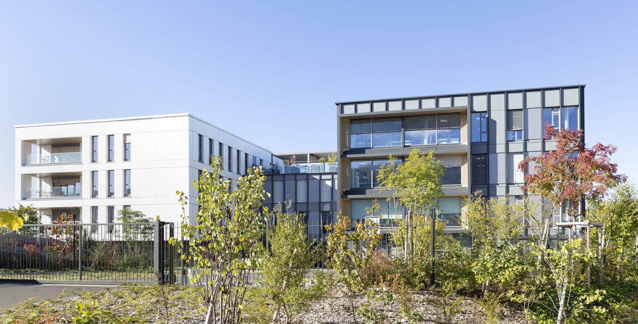 Les façades sont très largement vitrées pour un apport maximal de lumière naturelle, tout en assurant la ventilation par des ouvrants et une protection solaire efficace.