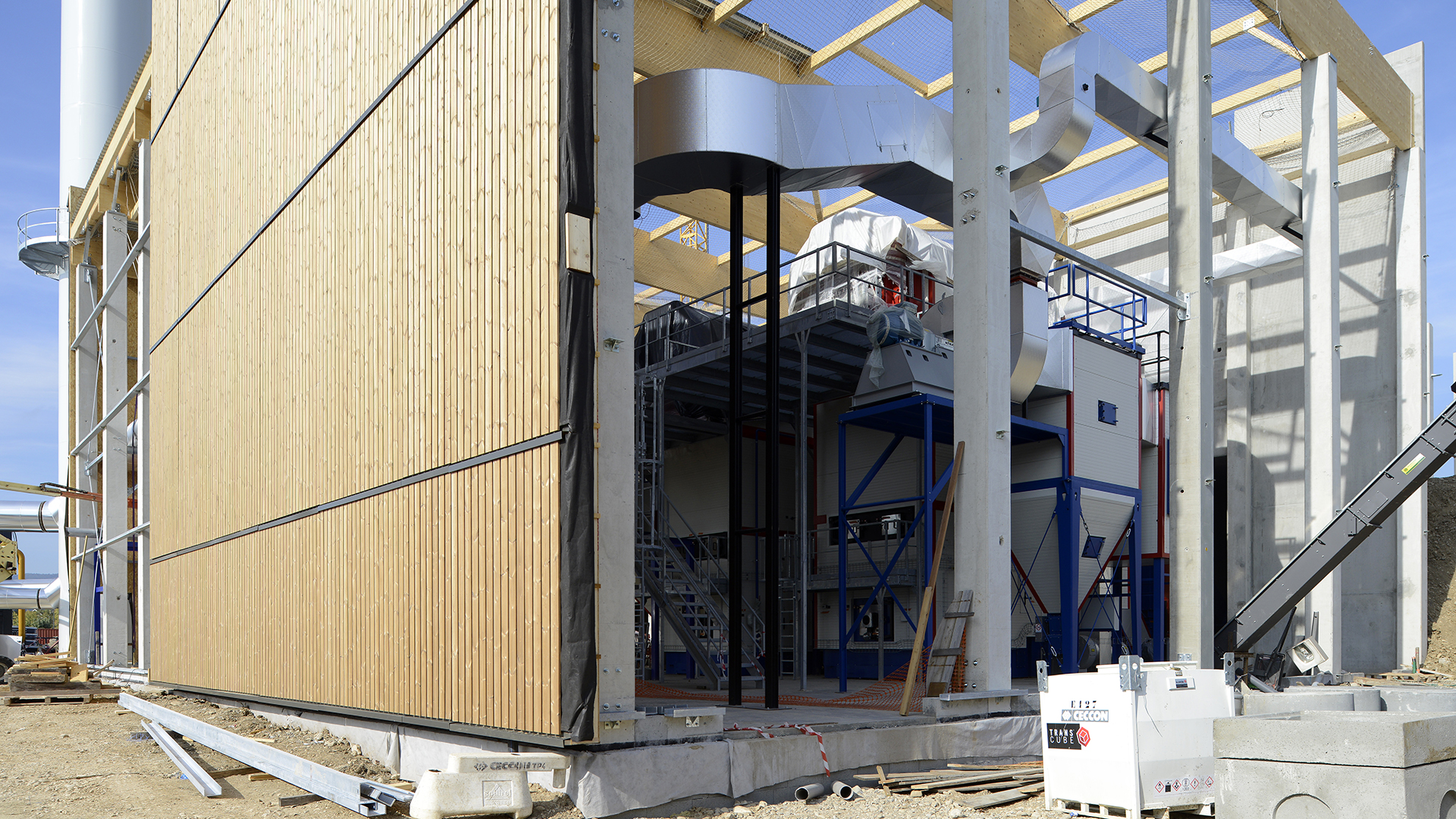 – un volume existant et réhabilité de faible hauteur qui recevra les chaudières et le silo actif bois. Ce bâtiment de structure métallique sera simplement adapté aux contraintes techniques de l’installation : élargissement des passages, création d’accès, fermeture de la façade côté Adixen…