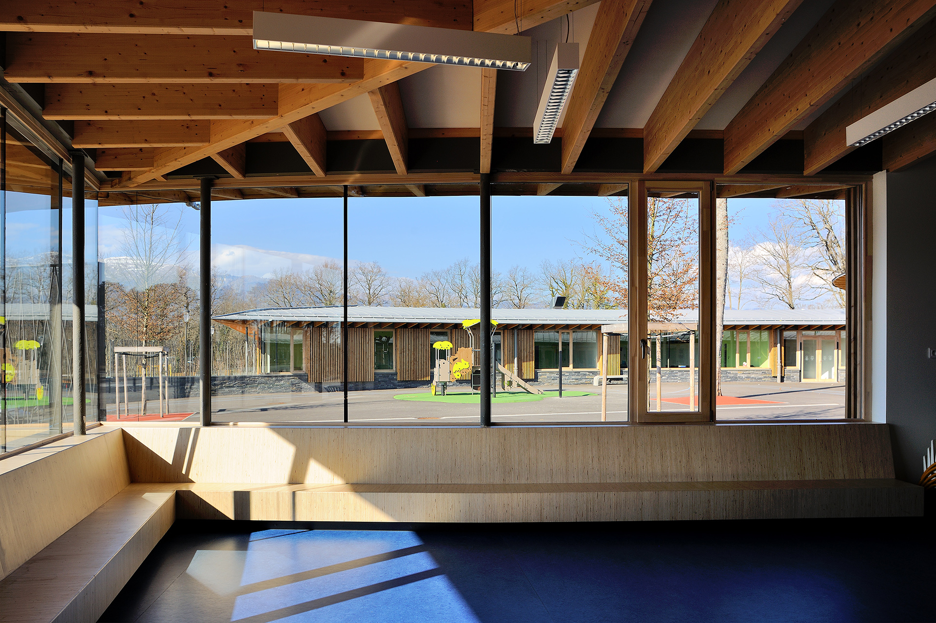 Le découpage du volume et la géométrie variable assurent à la fois l’accès à la lumière naturelle pour tous les espaces concernés et la bonne orientation des façades vitrées. Cette réalisation met à profit les ressources locales en bois de construction et en énergie, provenant du Label « bois des Alpes » et chaufferie bois. Les larges dépassés de toiture qui la caractérisent assurent la protection solaire et la pérennité des parements bois. La concertation avec les usagers et le suivi de performances ont été au cœur de la démarche du projet.